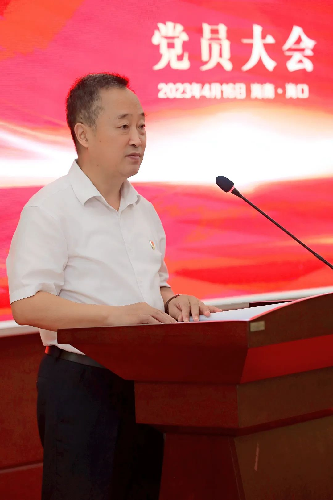 海口市高新区两新组织党委副书记傅爱萍宣读了《中共海口国家高新区非公有制经济组织和社会组织委员会关于同意成立中国共产党海南尊龙时凯药业集团股份有限公司委员会的批复》。